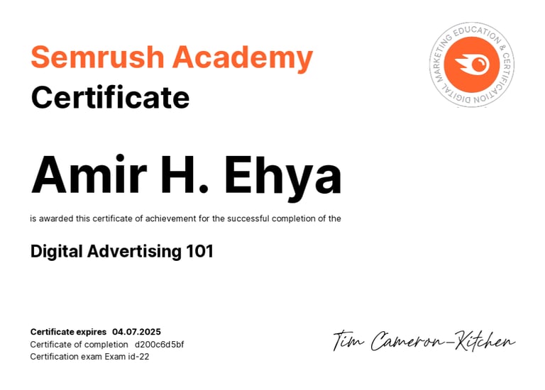 This academic curiosity turned into a genuine passion for performance marketing, prompting me to earn certifications in Google Ads and GA4.