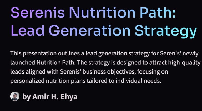 Developed a comprehensive lead generation strategy for Serenis' Nutrition Path launch.